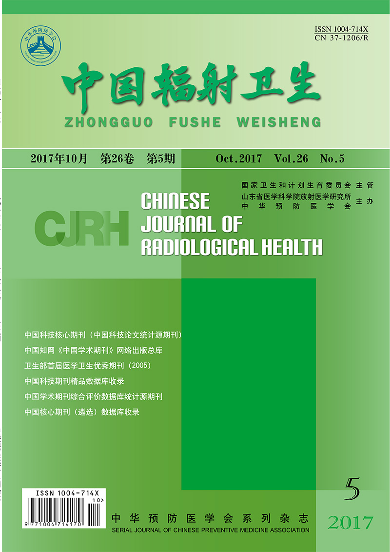 目的 探讨电离辐射剂量对放射工作人员健康的影响。方法 以2015~2016年江门市从事普通放射、介入治疗、核医学、放射治疗等的放射工作人员为研究对象,对其外照射个人剂量监进行并结合实验检查进行分析,同时选取93名健康医务人员作为对照组。结果 2014-2015年平均87.4%的放射工作人员年有效剂量小于1 mSv,从事介入治疗的放射工作人员人均年有效剂量均高于其他人员;不同工龄放射工作人员血象异常检出率不相同;介入治疗组的白细胞异常检出率、普通放射组的血小板异常检出率、核医学组和放射治疗组的中性粒细胞绝对值异常检出率与对照组比较,差异均有统计学意义(P<0.05)。结论 电离辐射对放射工作人员的血象异常率有显著的相关性。